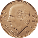 El diseño de esta moneda es igual a la de 10 pesos oro, solamente su tamaño y peso son diferentes. Contiene la cantidad de 3.7 gramos de oro puro.