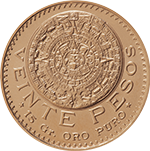 Al igual que la moneda anterior cuenta con el mismo diseño variando también en peso y tamaño. Esta pieza contiene 1.9 gramos de oro puro.